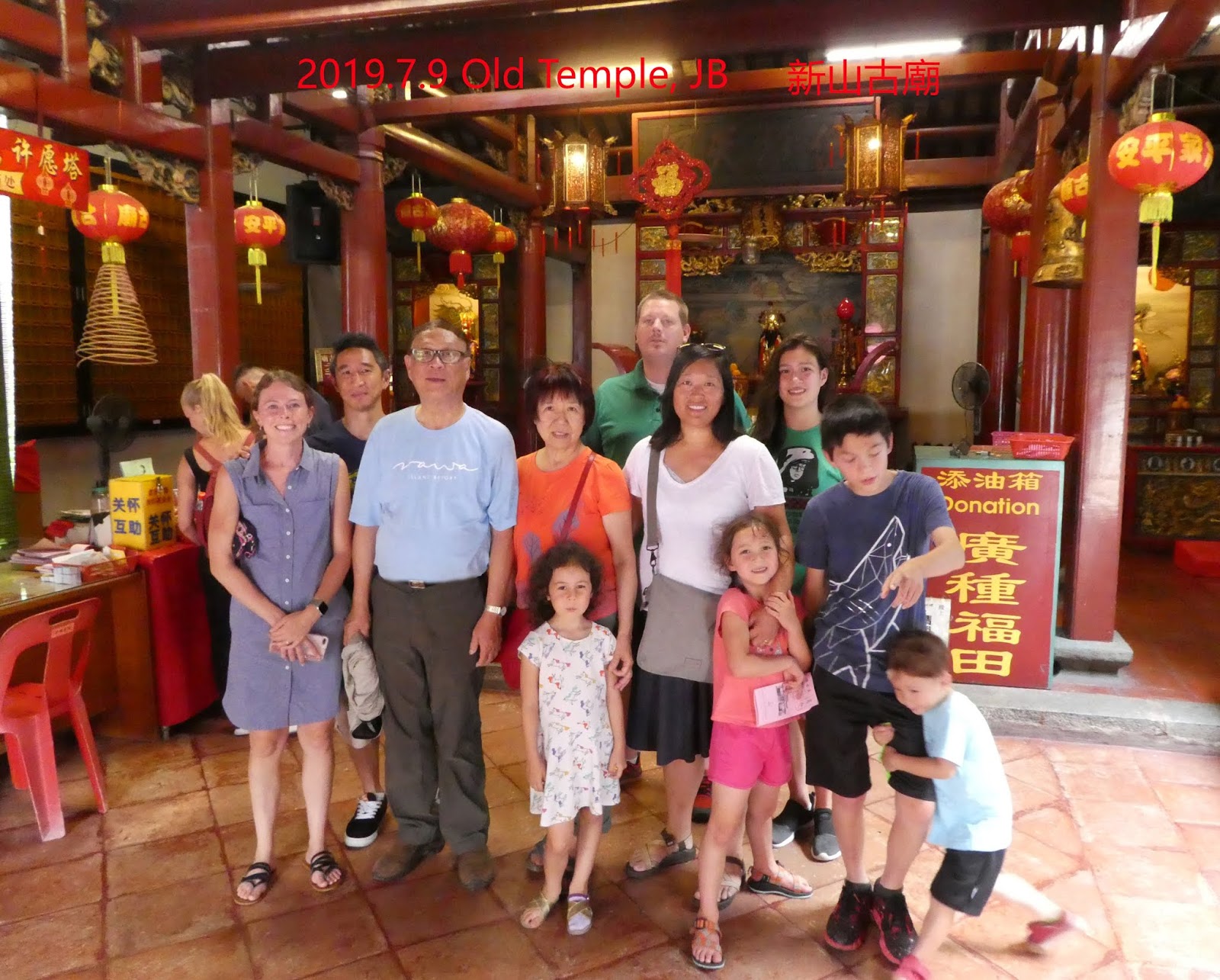 (DY's facebook) Finally came to Weeyong’s hometown Johor Bahru, visited the two places he had lived , but the stilt house is long gone! Kids are very interested in everything about Johor Bahru! 終於來到偉榮成長的地方新山!早期住的高腳屋已消逝,住得最久的老屋仍在卻已易手至今無人居住,孩子對這裡的一切都充滿興趣! Behind is Johor Strait ,used to have the stilt house weeyong lived! 背後的柔佛海峽,早期搭建的高脚屋曾是偉榮住過之處,孩子們都耳熟能詳!The old temple is most popular place for local Chinese New Year celebration! 新山古廟是當地人過中國年必去之處,香火頂盛! Johor Sudan palace garden (Istana Bukit Serene, last 2 pictures), night view! 柔佛蘇丹皇宮花園夜景!